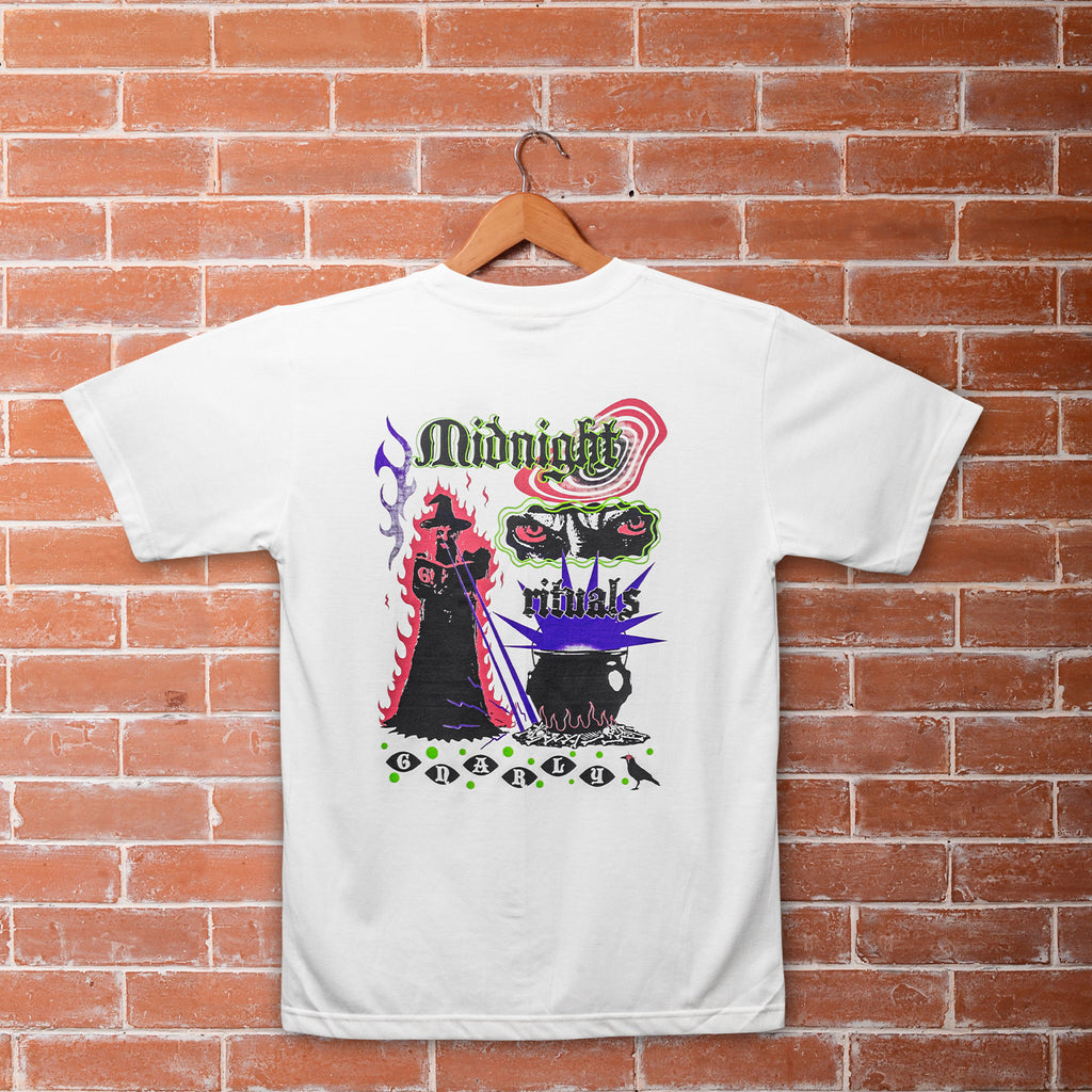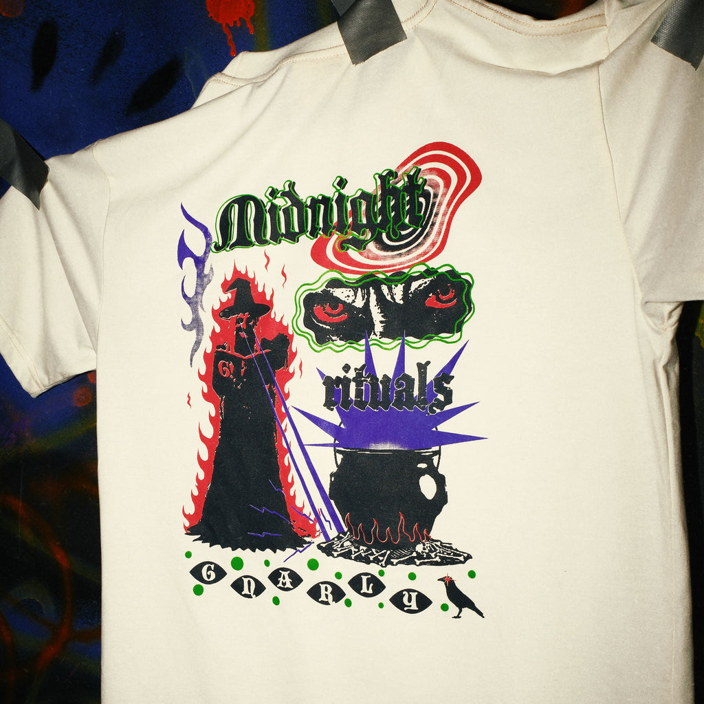 Step inside the circle. The Rituals Tee draws from occult energy and midnight experiments. Reimagined in Gnarly’s bold, street-ready tone. Printed on soft cotton with a mix of distorted typography, illustrated potion vials, and familiar Gnarly chaos.
